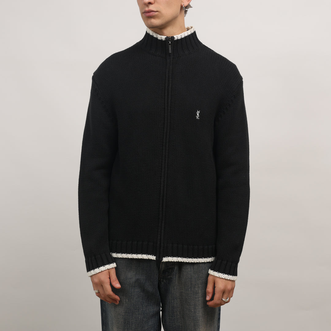 Yves Saint Laurent (YSL) Full-zip Jumper - Medium Black Cotton