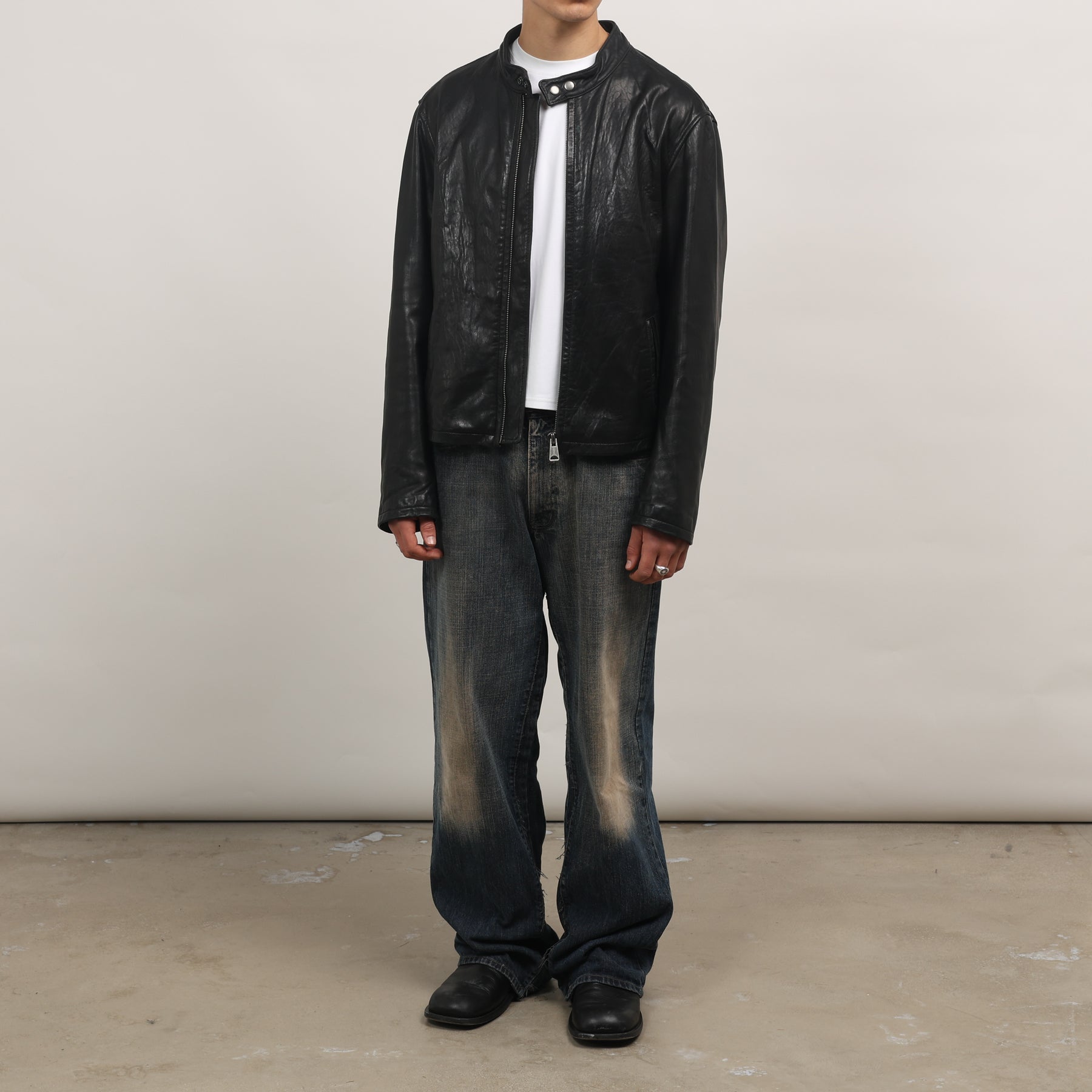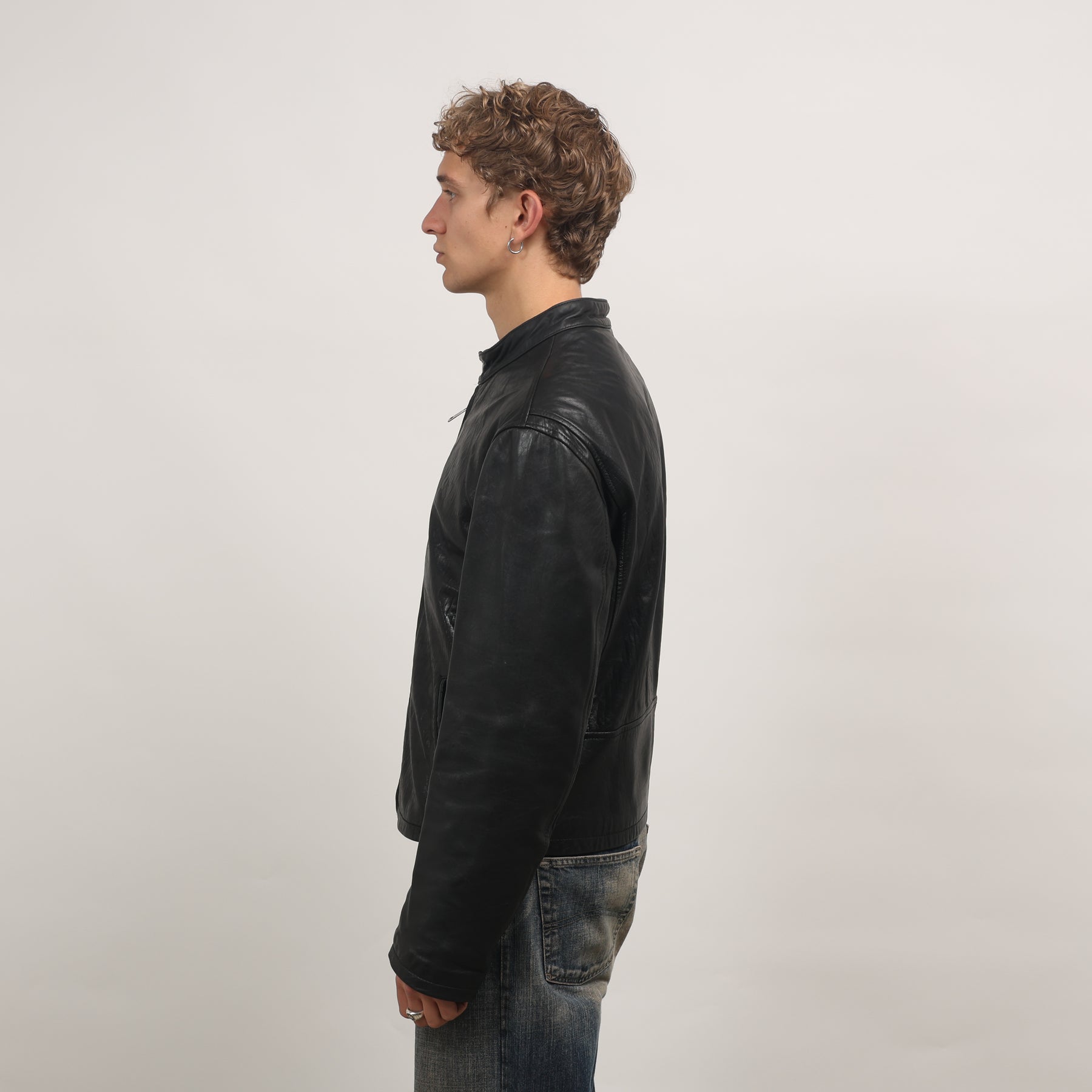 90's Leather Biker Jacket - Large Black Leather