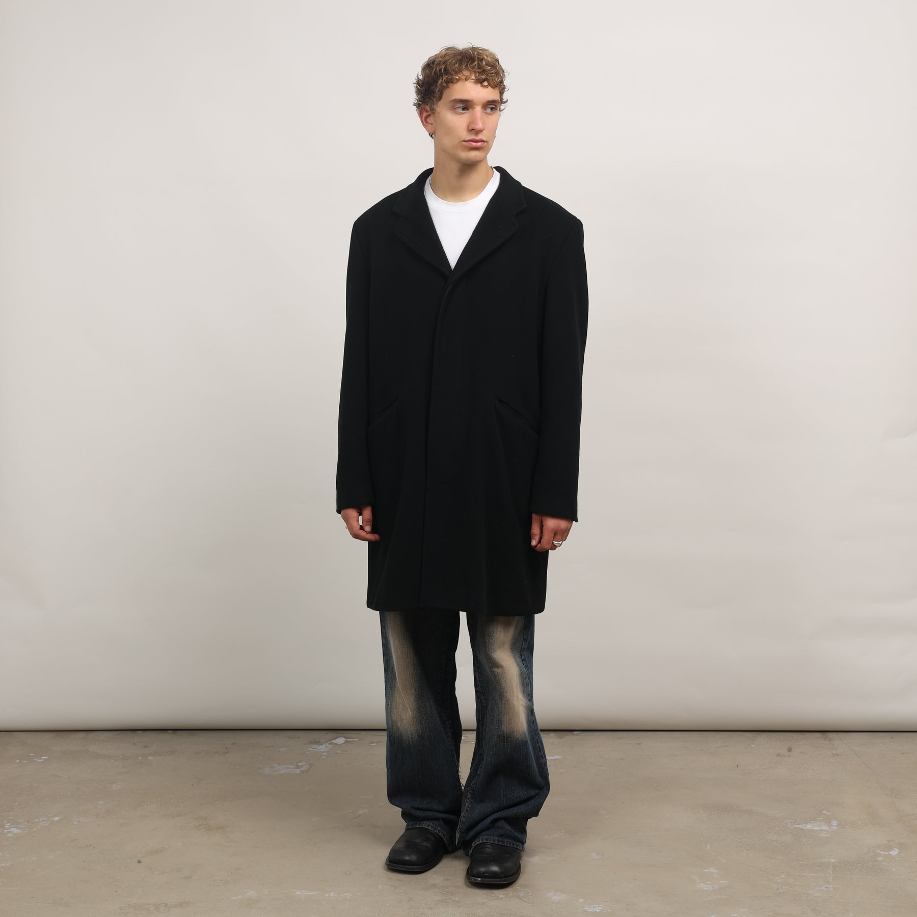 90's Overcoat - XL Black Wool