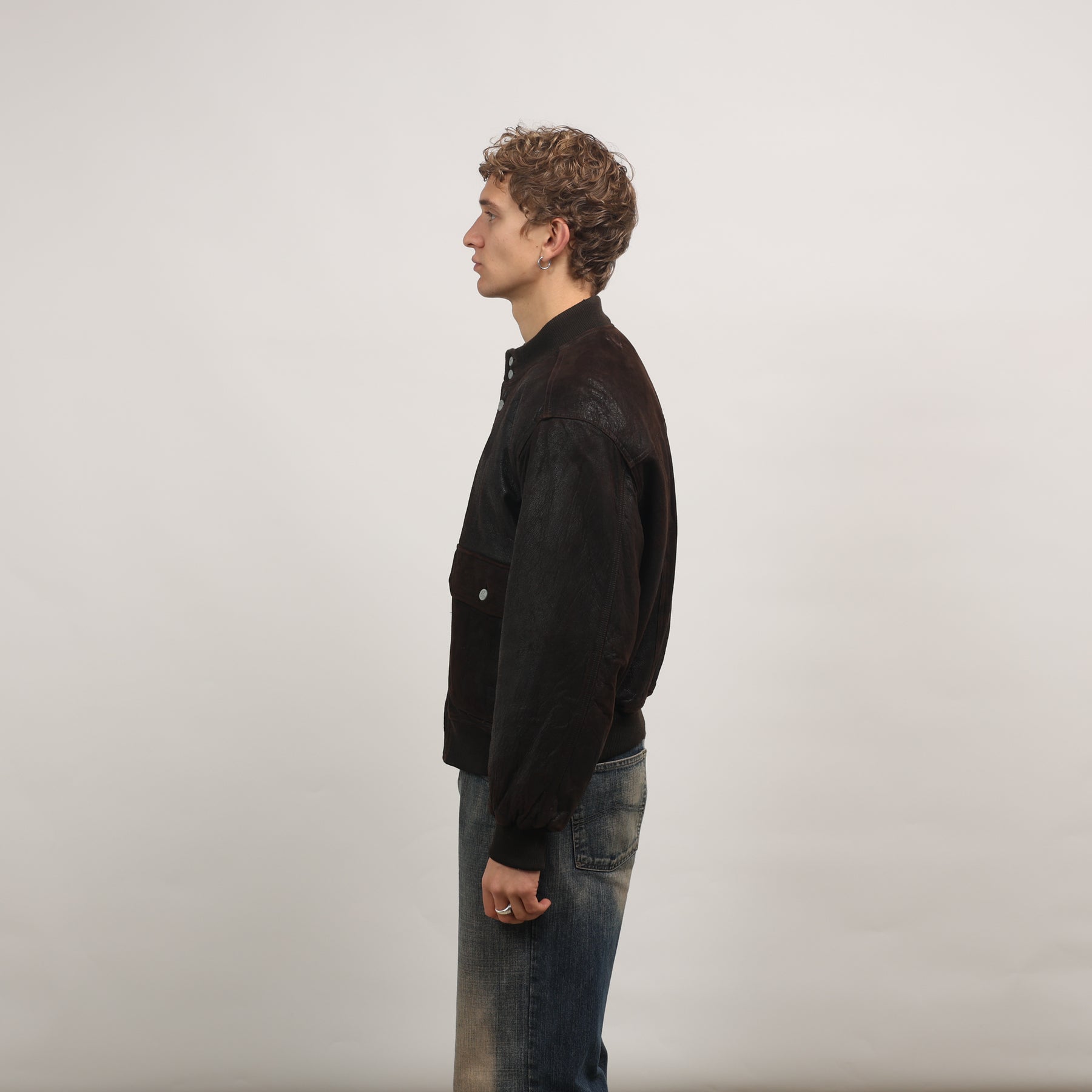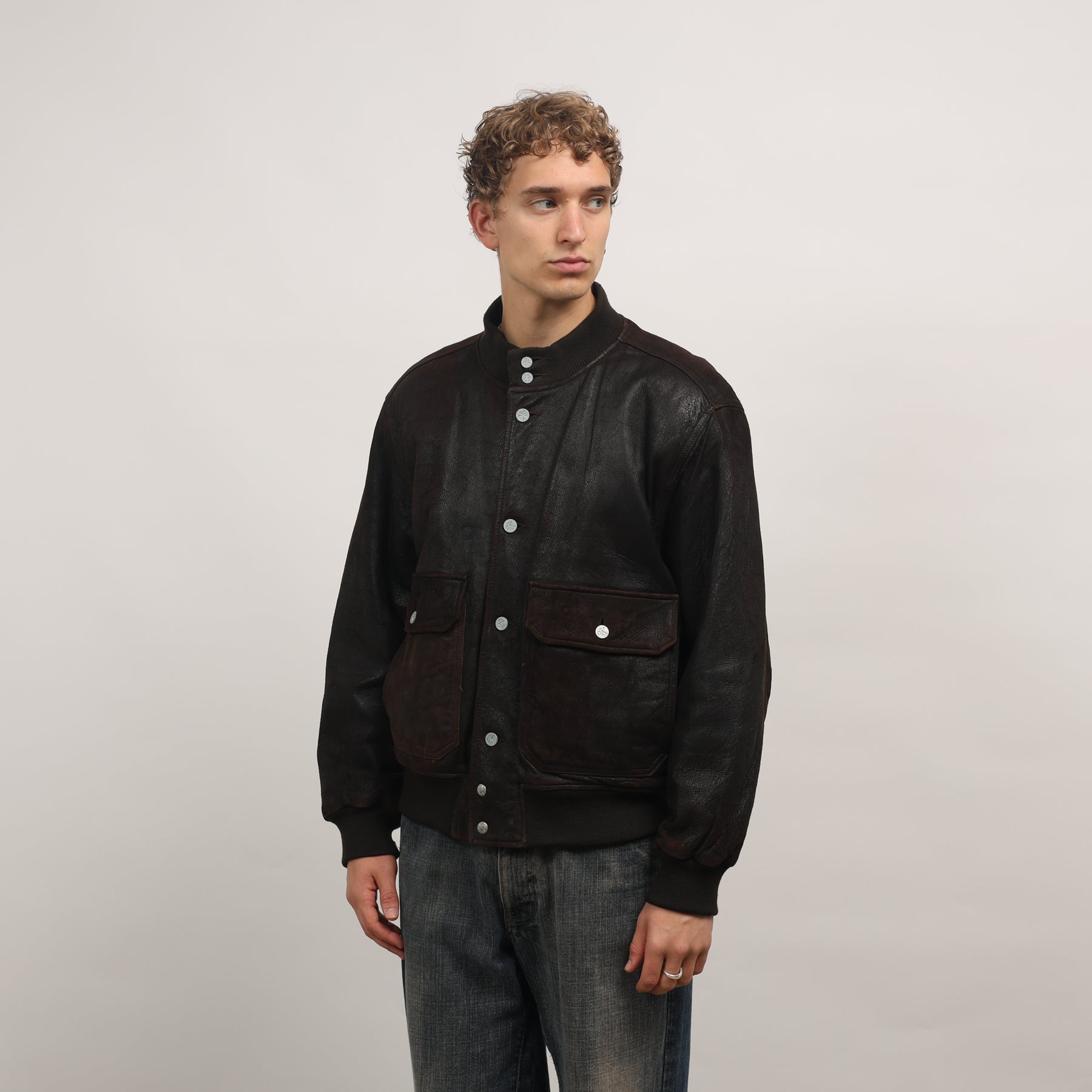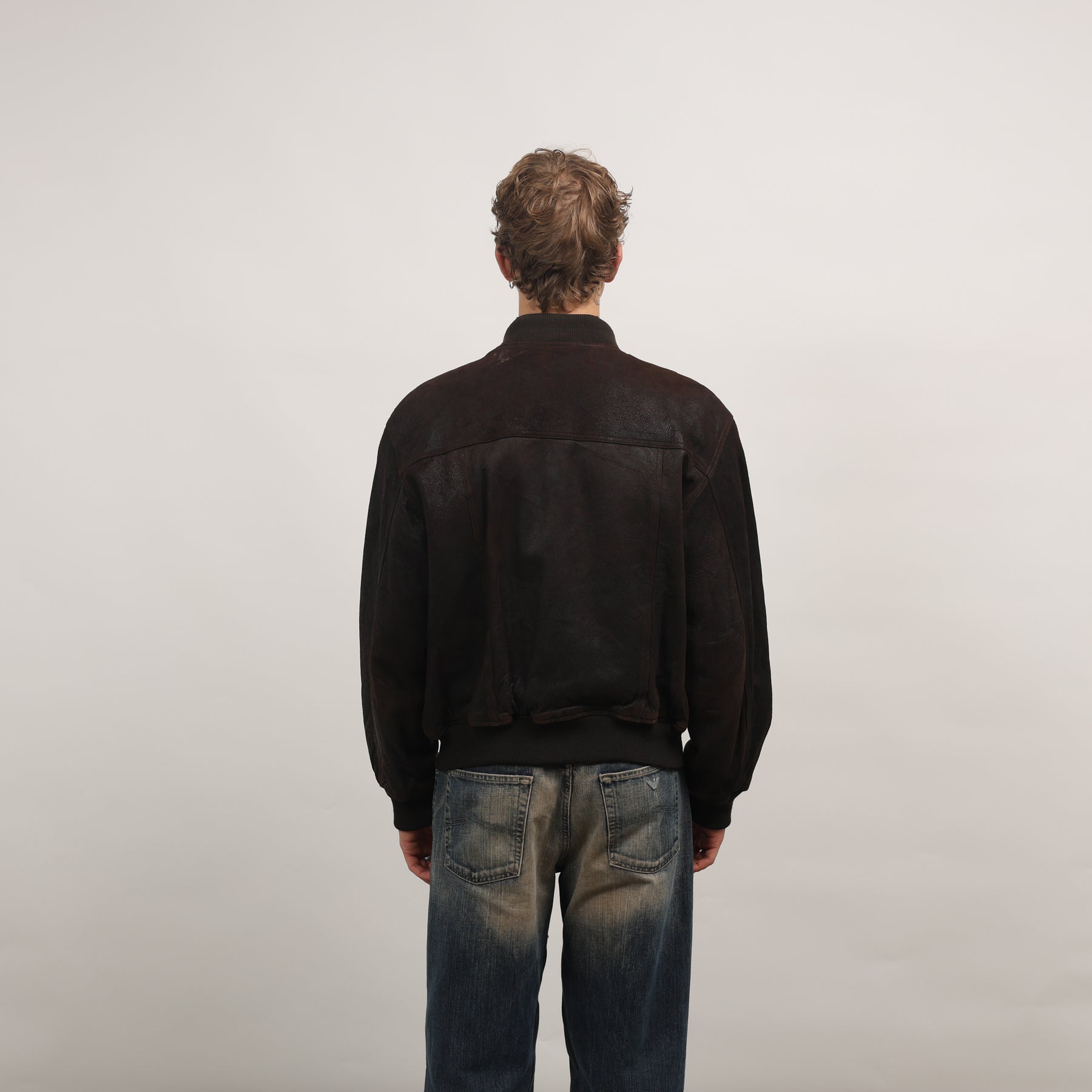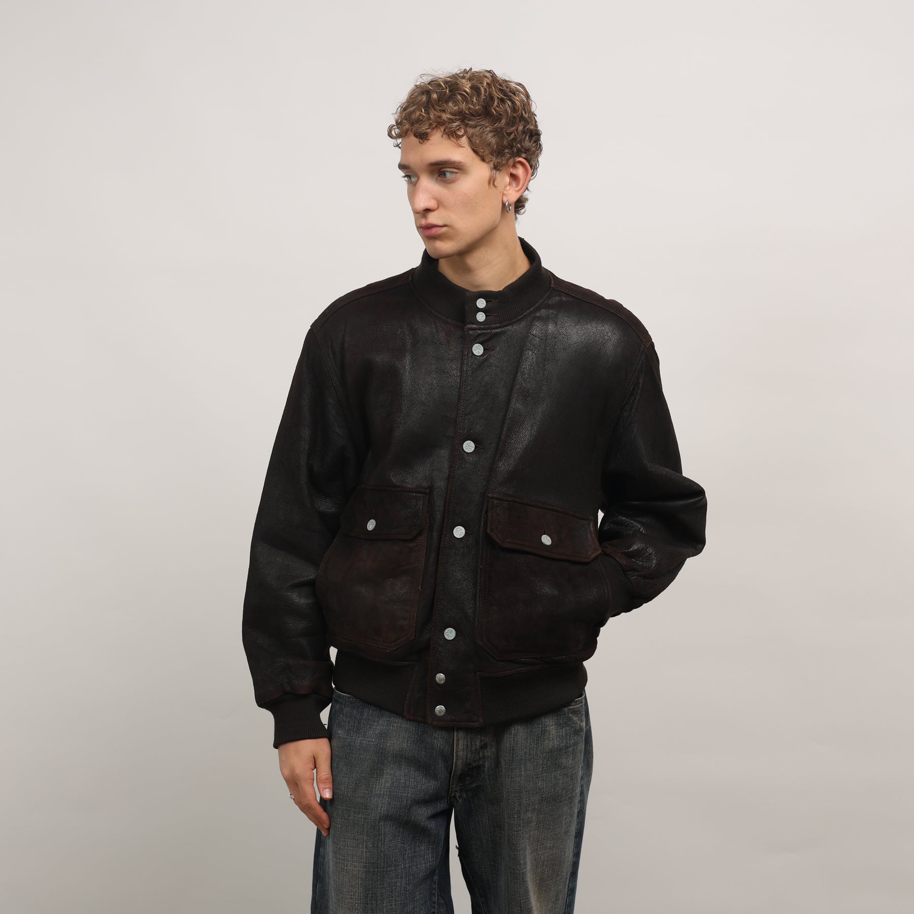 Calvin Klein Leather Bomber Jacket - Large Brown Leather