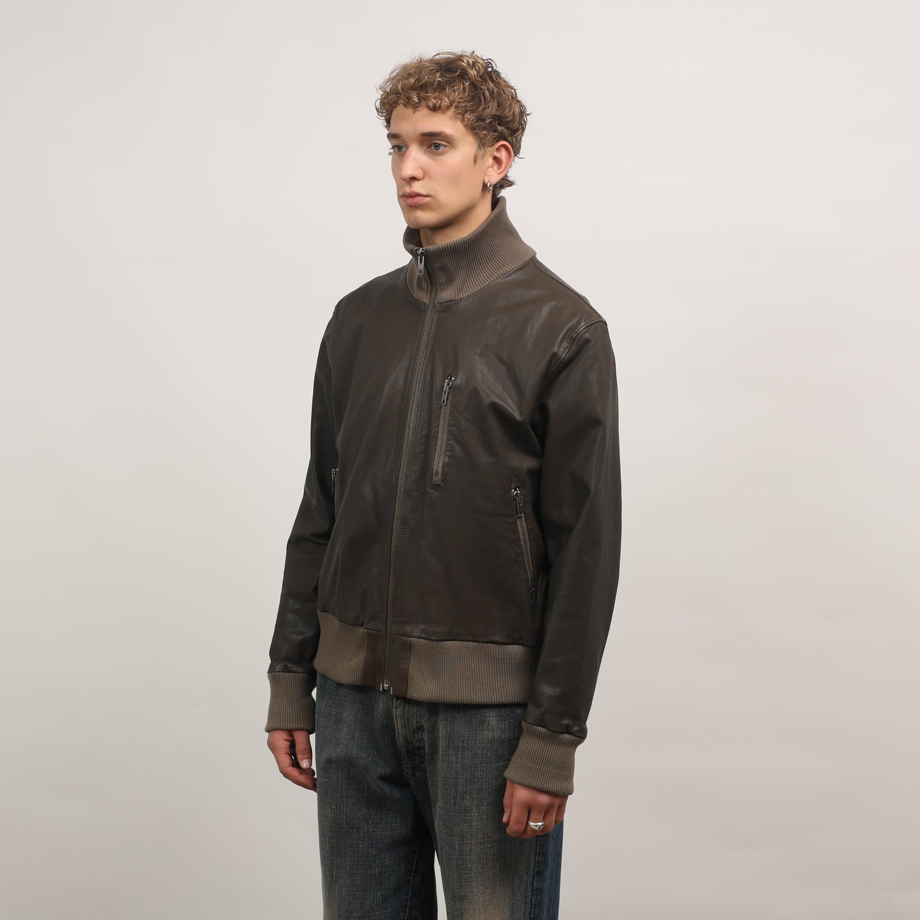 Paul Smith Leather Bomber Jacket - XL Brown Leather