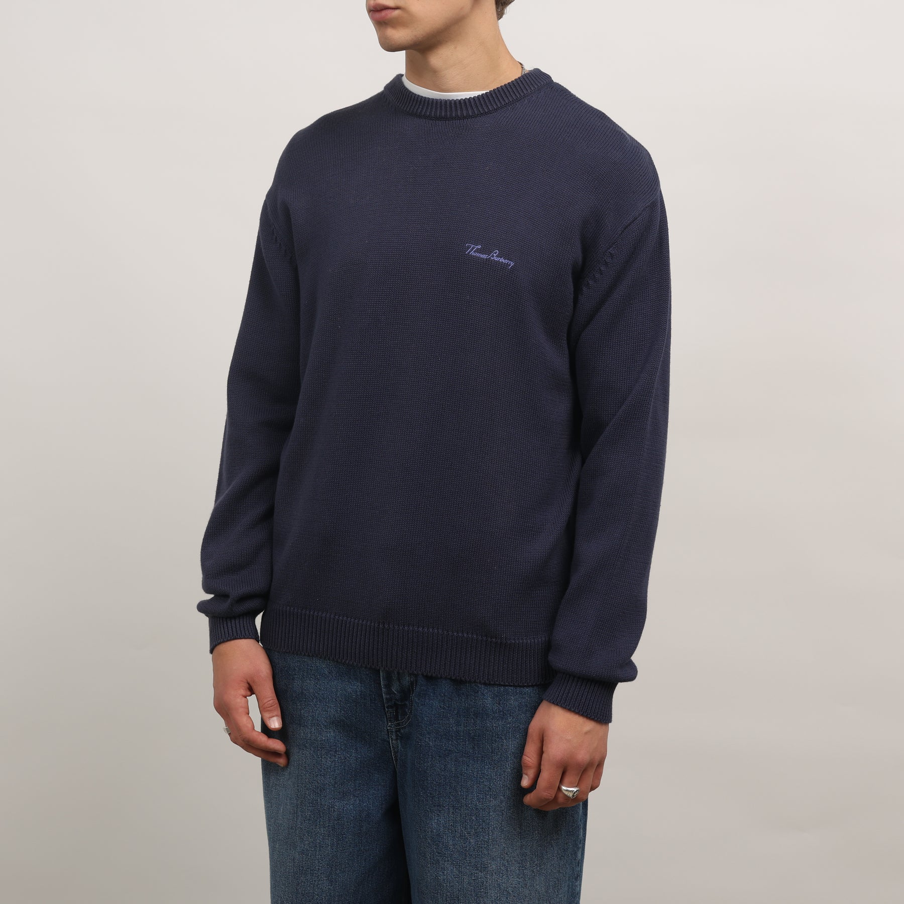 Thomas Burberry Crewneck Jumper - Medium Navy Blue Cotton