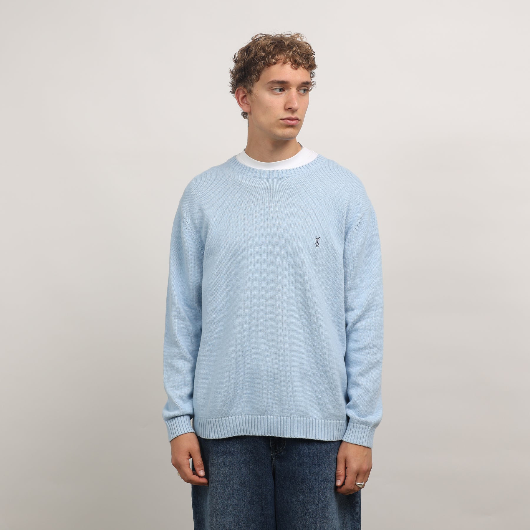 Yves Saint Laurent (YSL) Crewneck Jumper - Large Baby Blue Cotton